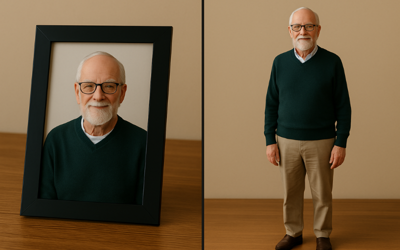 Tutto inizia da una o più fotografie della persona cara. Attraverso avanzati sistemi di modellazione, ricreiamo un modello virtuale realistico che riproduce fedelmente i tratti e l’aspetto originale.